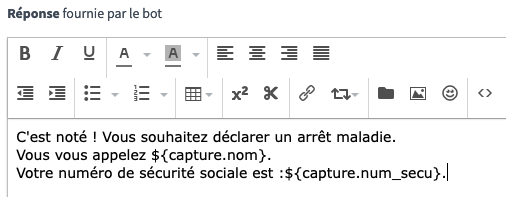 Consider the following example: A user wants to declare a sick leave on the RH chatbot. To handle the request, the latter asks for the user’s personal information.