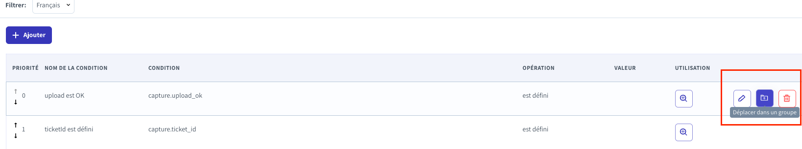 Note that you can create priority groups by clicking **...** located at the right of the context condition: **Move in a group**.