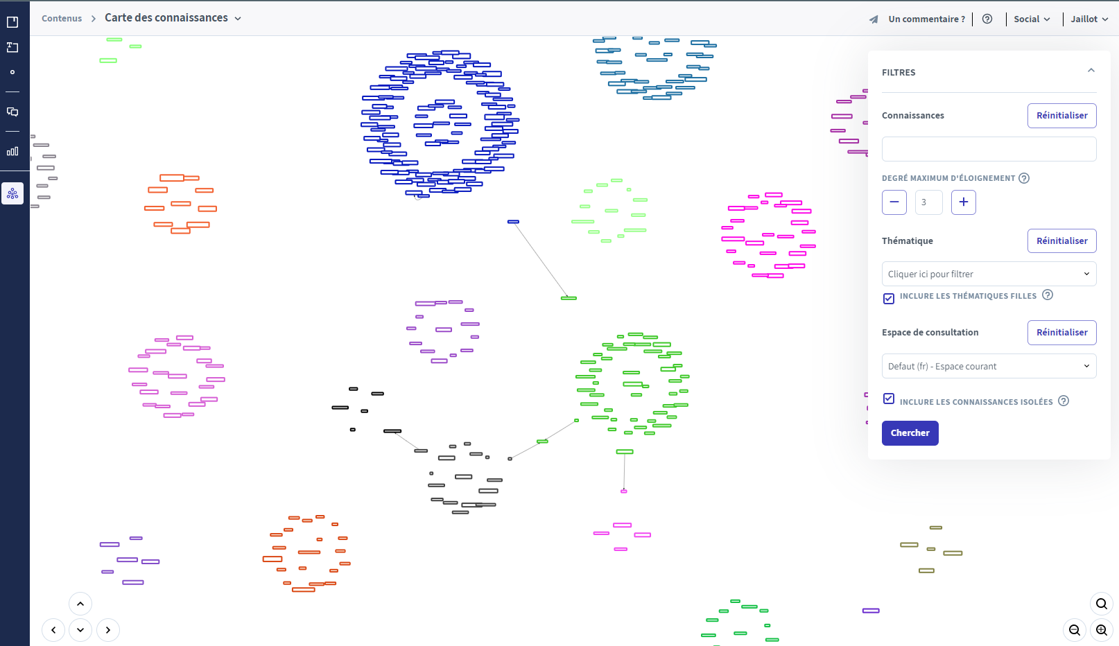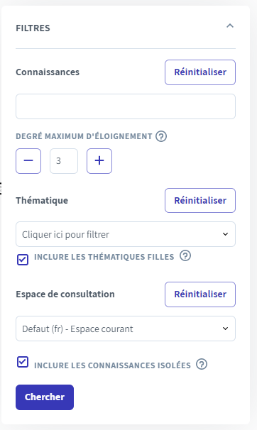 In order to customize the display of your knowledge map, you can use the filters tool at the top right of the page.