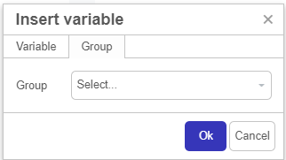 In the answer, once the cursor to where you want to add your formulation, select the **insert variable** button:  then select the variable or group. In our case, we select "dialog\_nb\_rewords" from the **Variable** tab.