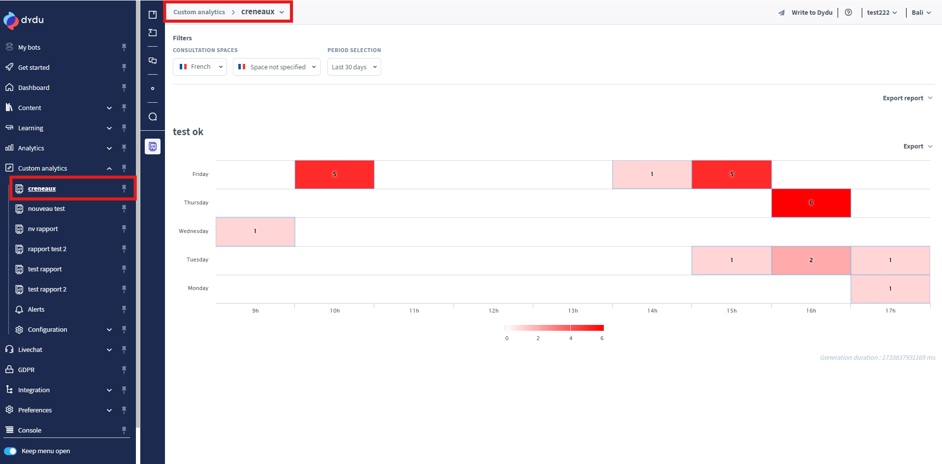 Once created, custom analytics reports are available directly from the left menu in the BMS.