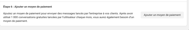 Since **business-initiated conversations** are **paid**, you’ll be asked to provide a **payment method**.