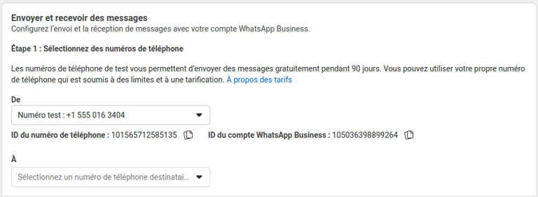 4. Choose the **test number** provided by **Meta** (**“Test Number”**).
