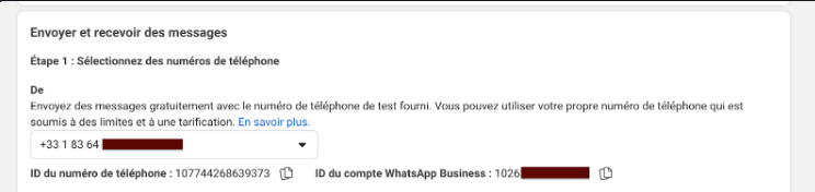 If you skipped that step and don’t know how to find your **page ID** and **access token**, we explain it [**here**](#find-the-phone-number-id-and-access-token)!