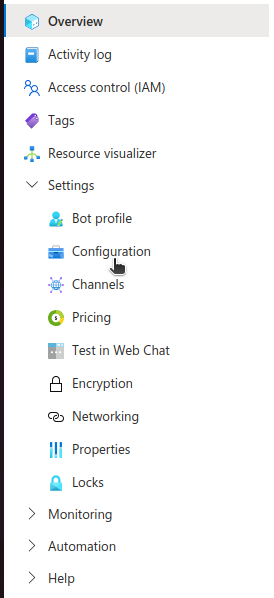 Azure Portal: Create a configuration and set up the connection between this configuration and dydu. The operations to be performed in this section are: