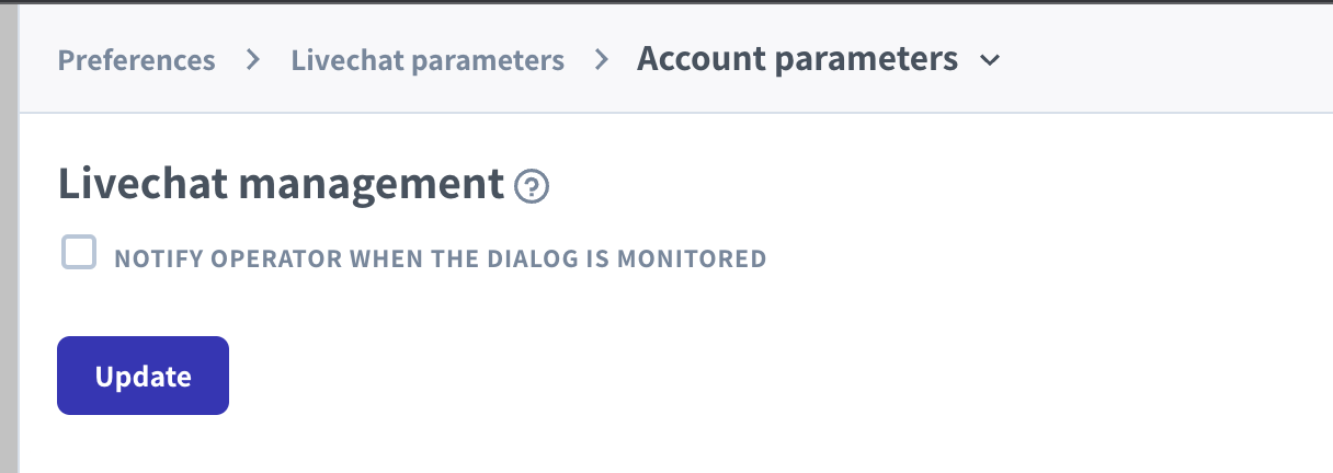 * **Notifications per operator** : here, the Livechat manager will be able to define the triggering of notifications for a chosen operator on specific event (for example when being assigned a new dialog). The operator will not be able to deactivate them on its own.
