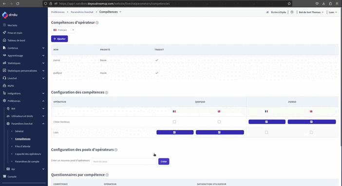 Operator pools can be created. These pools create groups of operators with multiple skills. In each pool it is possible to distinguish the livechat manager(s) from the operator(s). This allows, among other things, to filter operators according to a specific criterion, for example the service to which they belong, their locations, etc. Thanks to this feature, the manager will only see the operators of his pool from his interface.