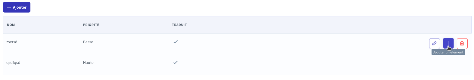You can add levels and sub-levels of competencies. The + adds a new competency. When you hover your mouse over a competency, a new + is displayed on the right. It allows to add a sub-level to that competency.