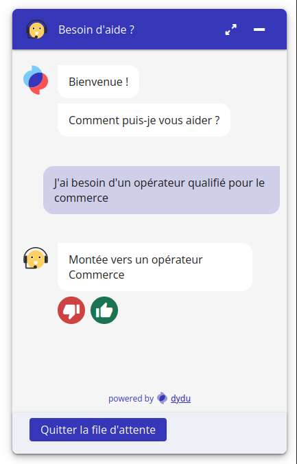 To keep users waiting if all connected operators are at their maximum capacity (handling simultaneous conversations), it is possible to set up a waiting queue system.